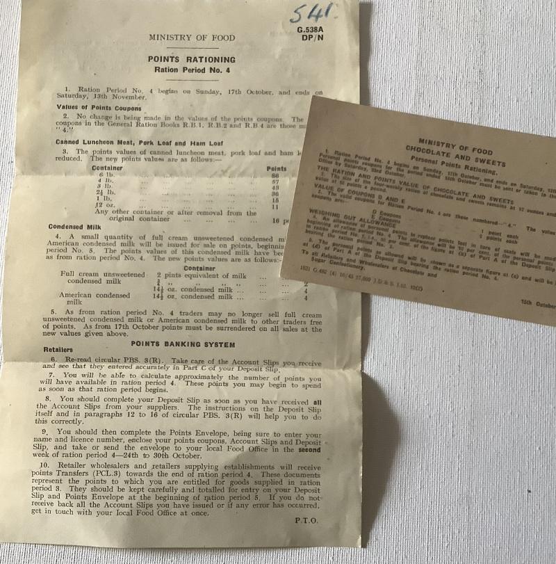 1943 Dated Food & Sweets Card and Leaflet. Good condition.