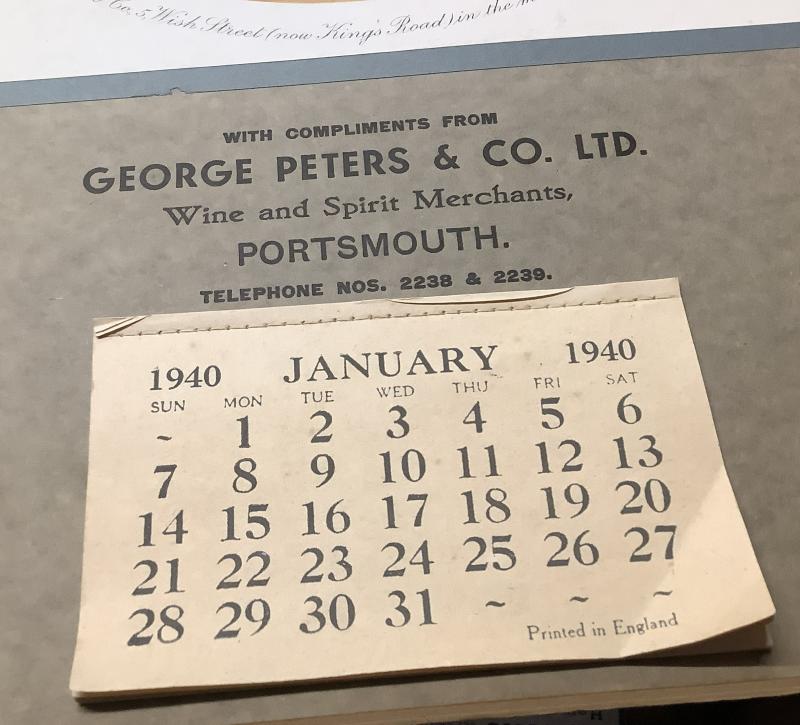 1940 Dated Calendar for the George Peters & Co Ltd Wine and Spirit Merchants. Which no longer exists due to being bombed by Germany during the war. Calendar is complete. No stains, very good condition Size is 12x10 inches.