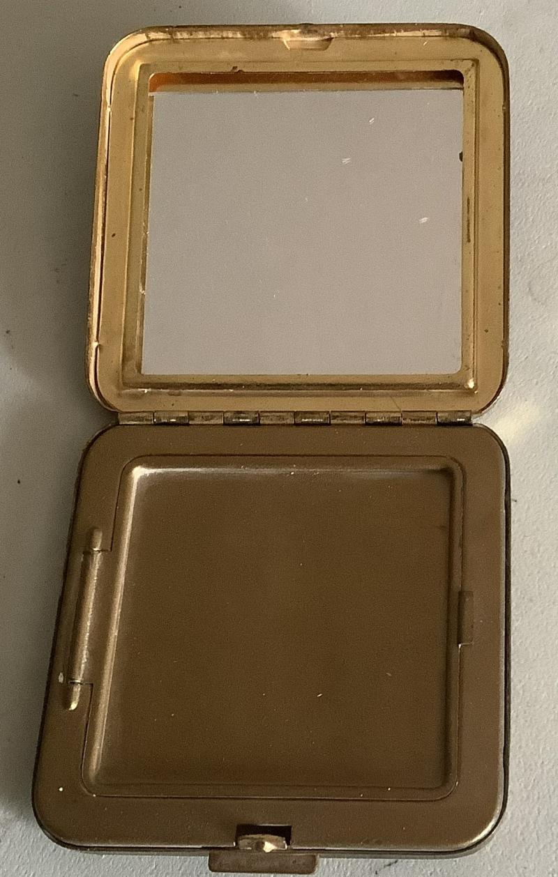 Lovely WWII US Army Ladies Powder Compact. Mirror and Enamel all intact, no dents or scratches. Clasp closes and the colors are still vibrant.