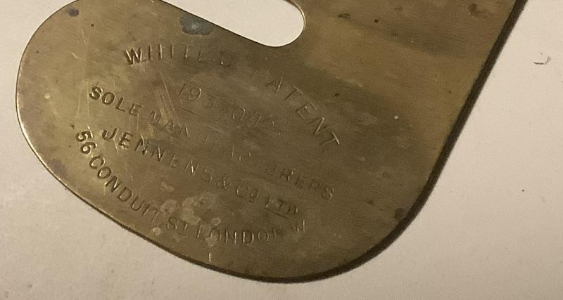 Unusual Design Military Brass Button Polisher. Has inscription to base. WHITES PATENT No19470/12 Bole Manufacturers JENNENS & Co London.
