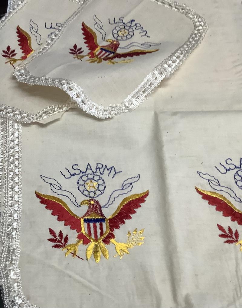 Napkin Set Place Mats, 1 x Runner, 4 x Medium Placemats, 2 x Large Placemats. Very good vintage condition.