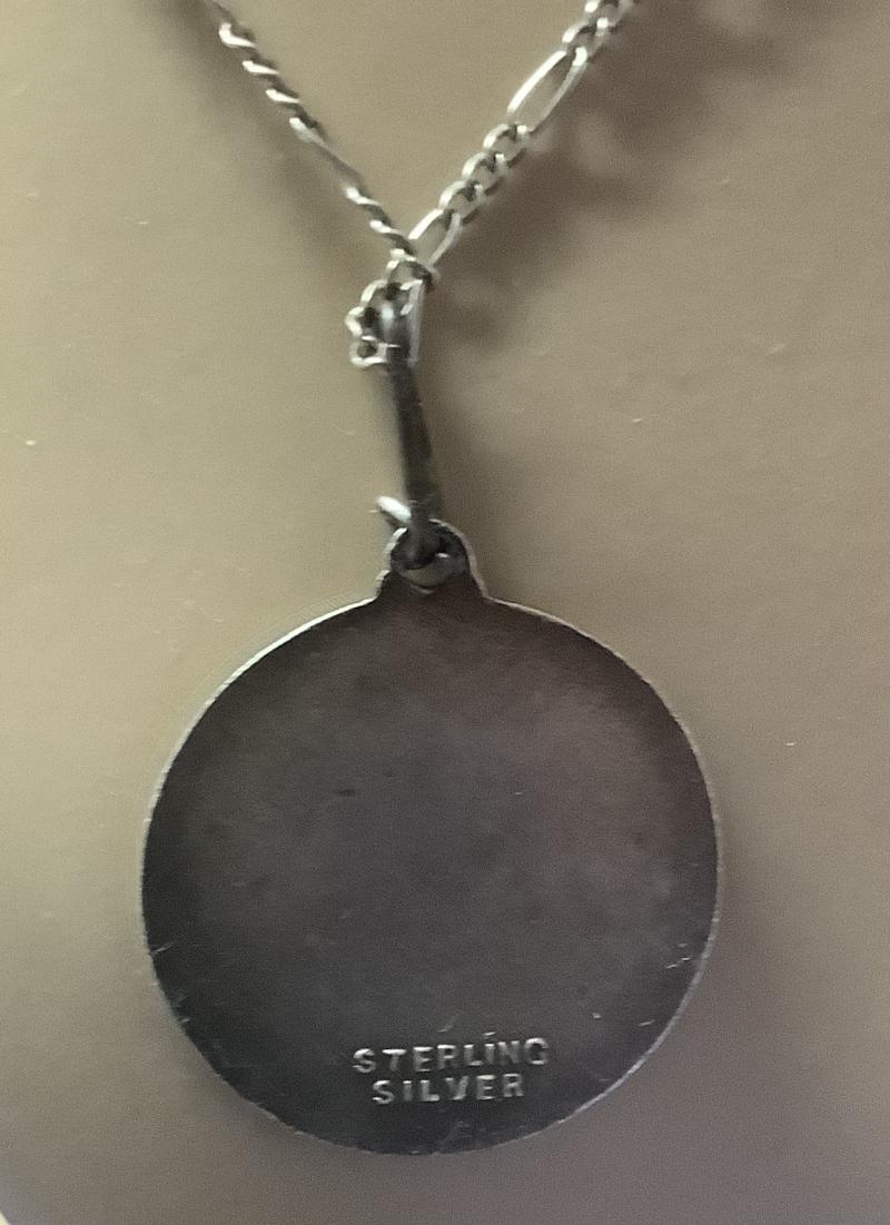 Early Enamel on Sterling Silver 8th Airforce Pendant Marked around the Rim US AIR Corps in England with the early short stubby wing insignia in the centre. Marked on reverse sterling silver.