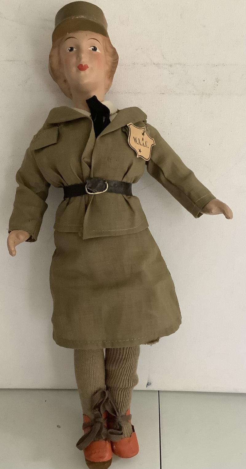 Classic Wartime WAAC Doll Original Paper Label Original Uniform. No Crazing or Damage. Exceptional condition for the age.