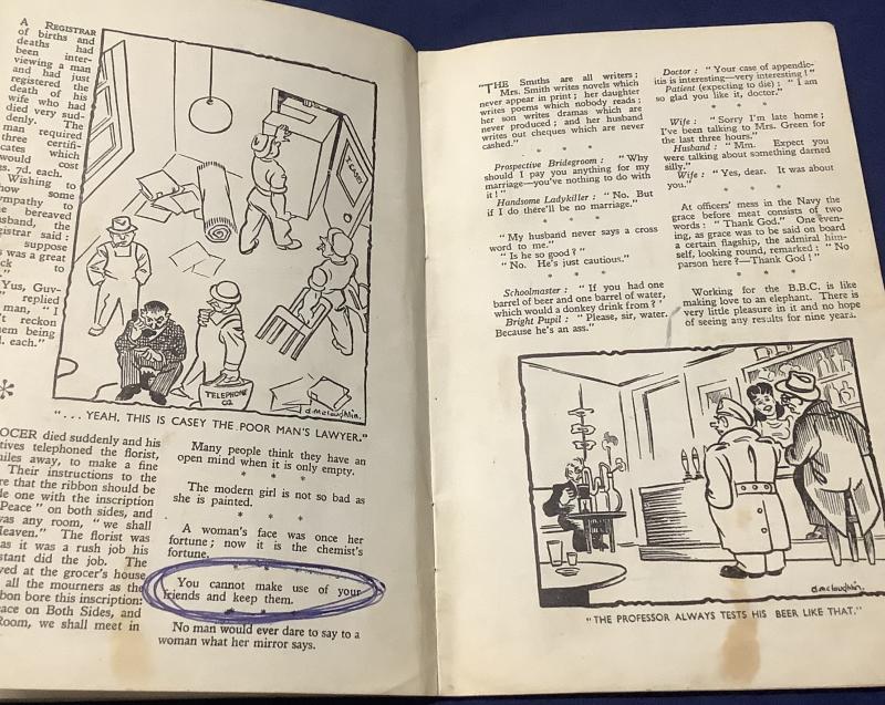 Booklet Containing Collection of Cartoons, Jokes and Drawing’s. Has minor wear due to storage. Small ink mark on one page.(See Picture).