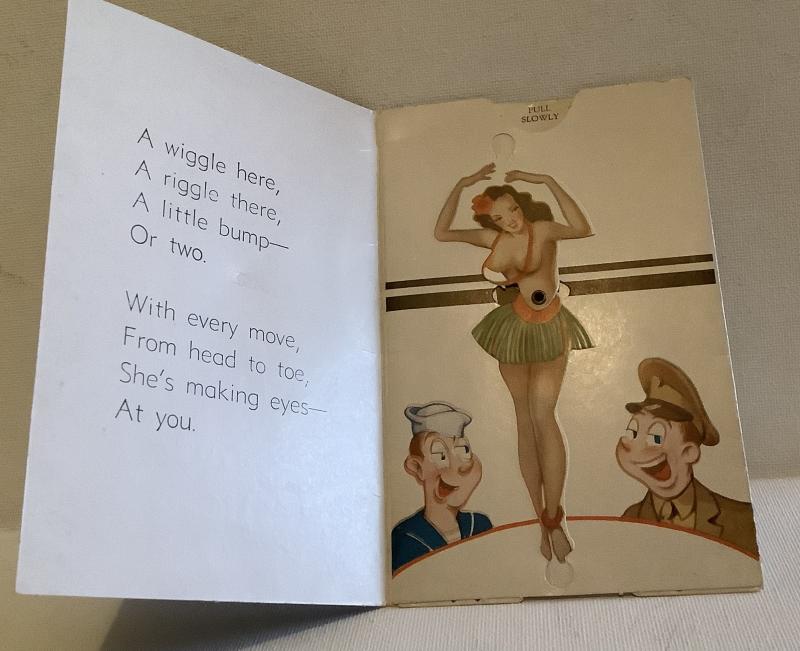 WWII US Risqué Cocktail Card Original Hula Hula Dancing Girl which has Slide movement.Moving side to side the Hula Hula Girl will Dance. Very minor wear.Free P & P