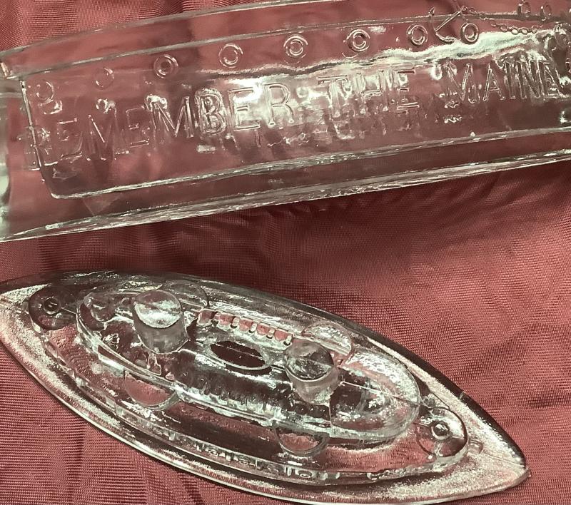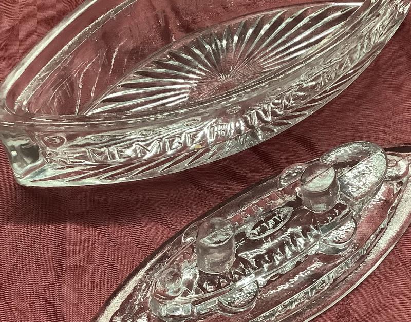 American Candy Dish in Shape of Ship, Marine with Writing to front, Remember the Maine. Very good condition.