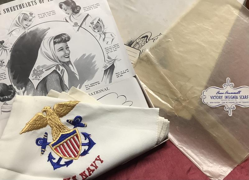 Victory Boxed WWII Ladies Scarf, with Original Paper Work. Overall good condition. Scarf has minor areas with slight yellowing, make great display piece.