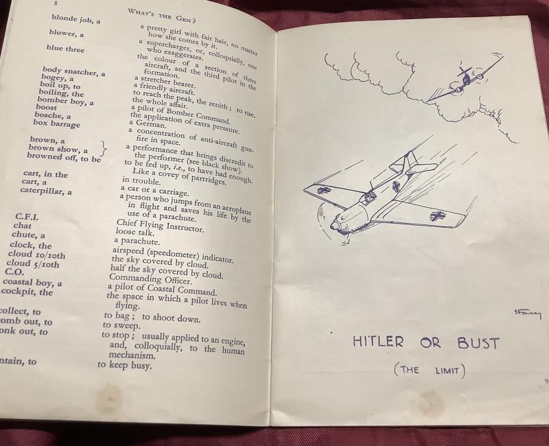 ‘What’s The Gen’ RAF Slang Booklet. Comical Sketches. Minor Wear to Front Cover due to Storage. Pages are all intact, one small stain.