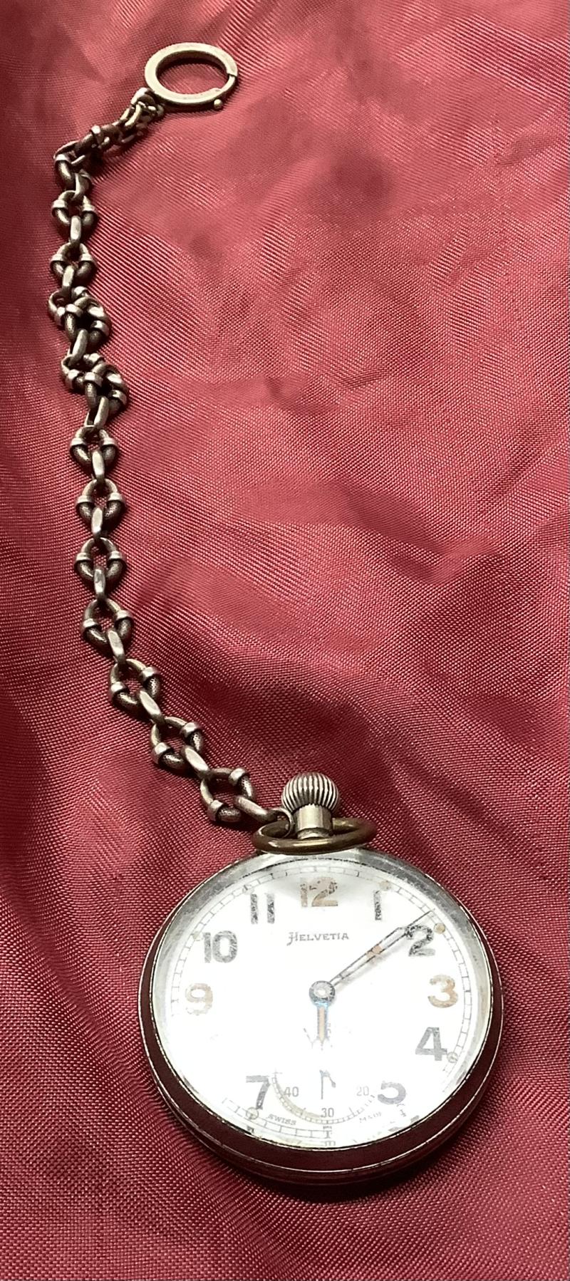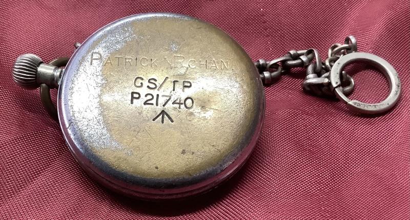 GWO WWII Military Pocket Watch with Chain. Face/ Dial in Good Condition. Arrow Mark to back. Minor wear due to storage.