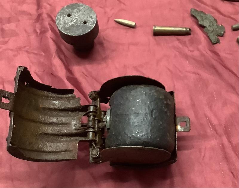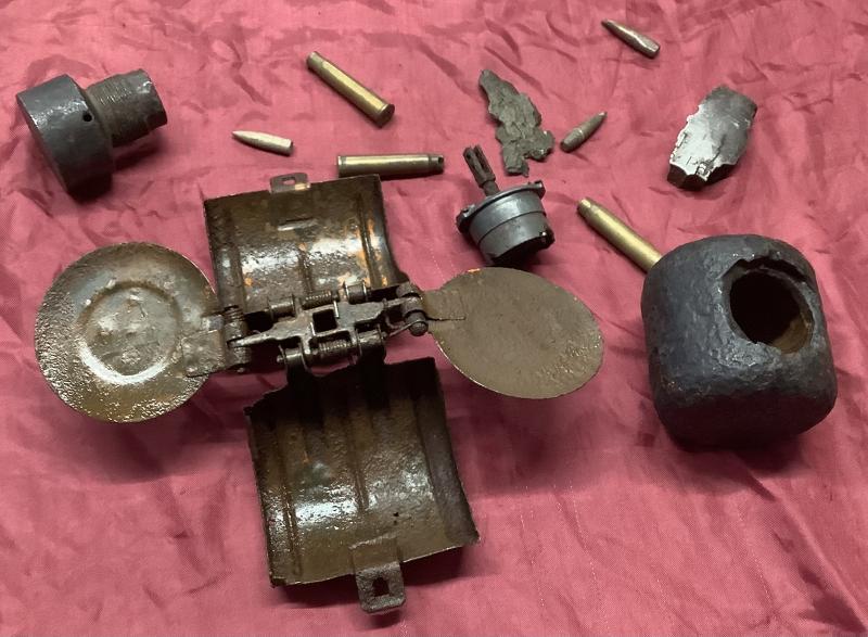 Selection of items picked up following German Luftwaffe Bombing Raids against Norwich and surrounding area’s 1940-43, Of particular interest is the German SD 2 Butterfly Bomb along with German Bomb Shrapnel, A German 1 KG Incendiary Bomb nose and spent .303 & 7.9 mm rounds.
