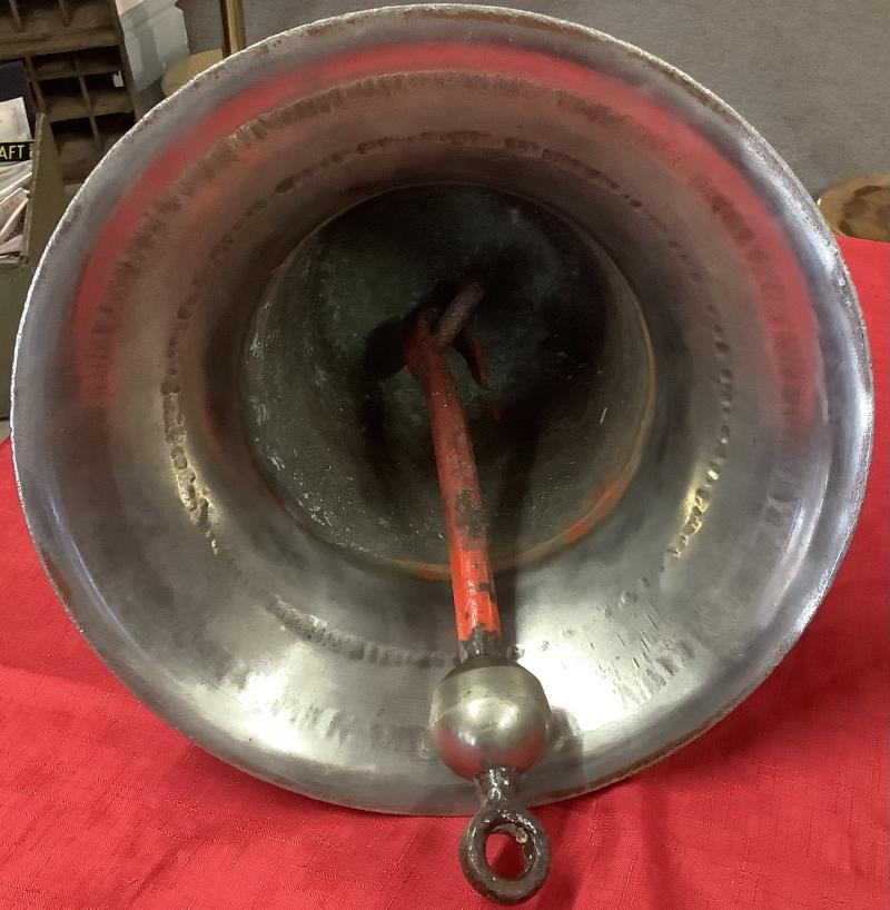A great original example of the classic RAF Air Ministry Nickel Plated Bronze Bell. Immortalised in Pathe News film clips which shows RAF Fighter Pilots running to their Hurricane and Spitfire Fighters to do battle with the Luftwaffe to the clanging of one of these iconic bells. This example has the Crows Foot and is marked ATW to the top of the bell. AM and 1940 marked to the main body of the bell. Able to post but will have to message for quote as heavy.