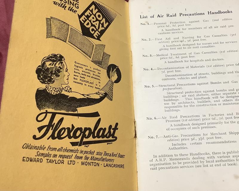 1938 Dated ARP Booklet. Handbook No 2. First Aid for Nursing For Gas Casualties. Minor wear to cover, all pages in good condition. Free P & P.