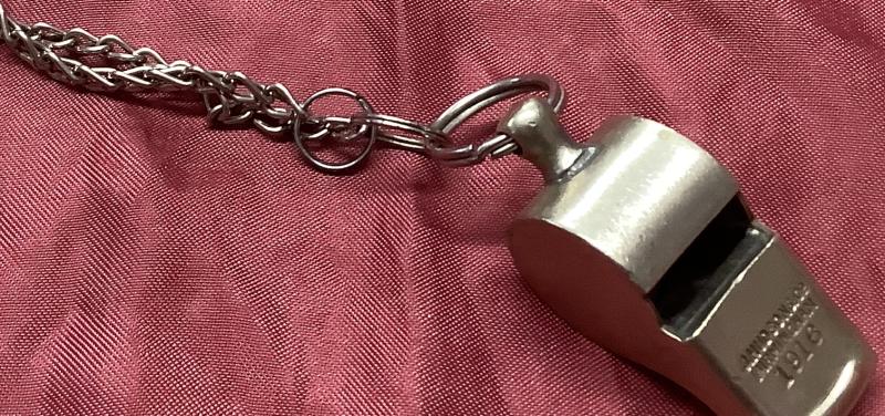 1916 Dated J Hudson & Co Whistle Birmingham. Working, has original chain.. Free P & P.