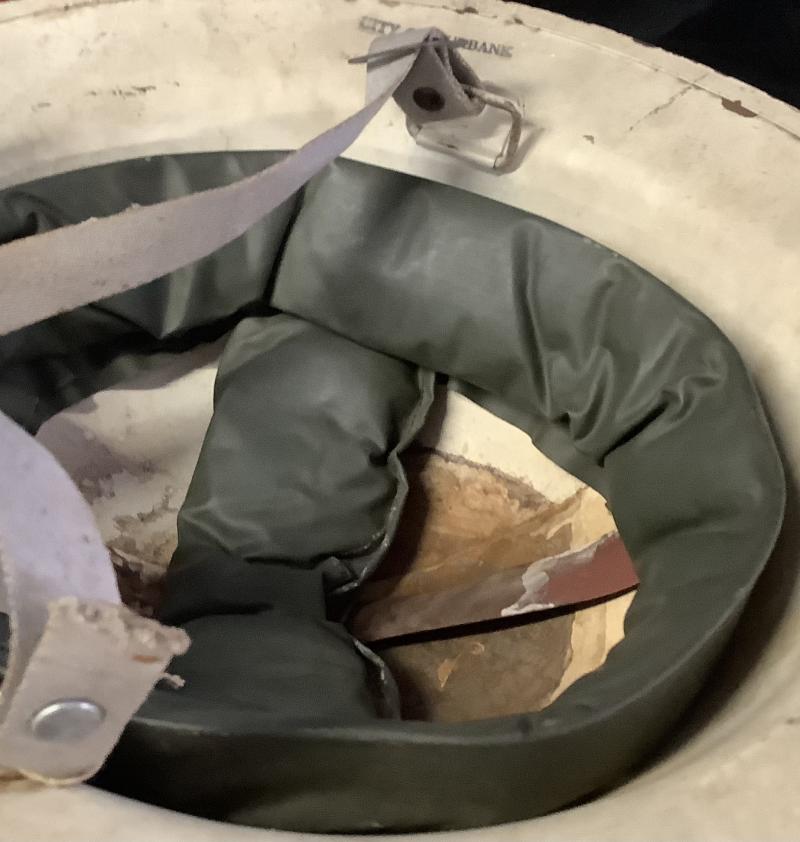 BURBANK Civil Defense Canadian Home Front Police Helmet. Lining Good condition has minor wear due to storage.