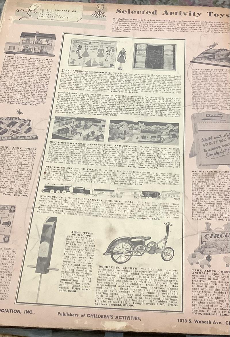1943 Dated Childs Activities Booklet. Pages are all in good condition. Minor wear to cover due to storage.and small stain.