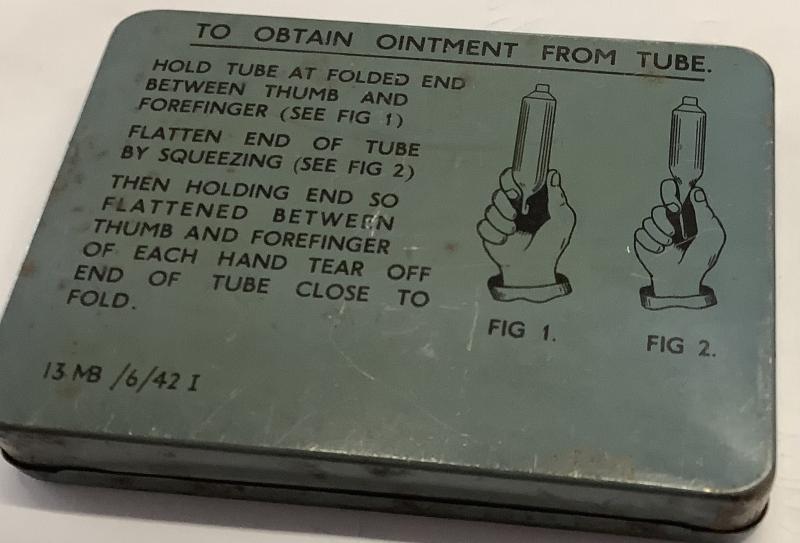 1942 Dated Anti-Gas Ointment Tin (Empty). Blue in colour. Minor wear.