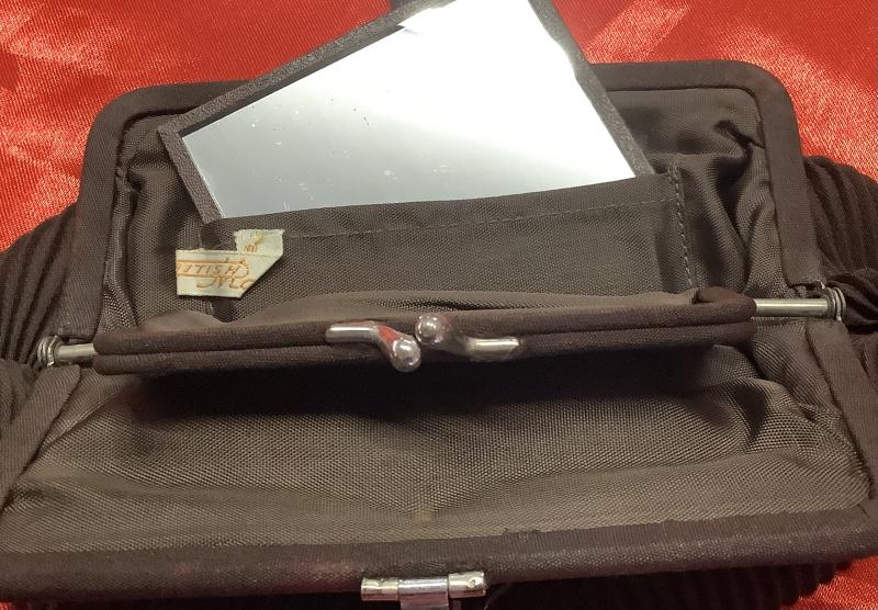 Beautiful Ladies Handbag. Working Clasp has original mirror, and purse attached. Clasp has lovely Marcasite teardrop shape. Very good condition.