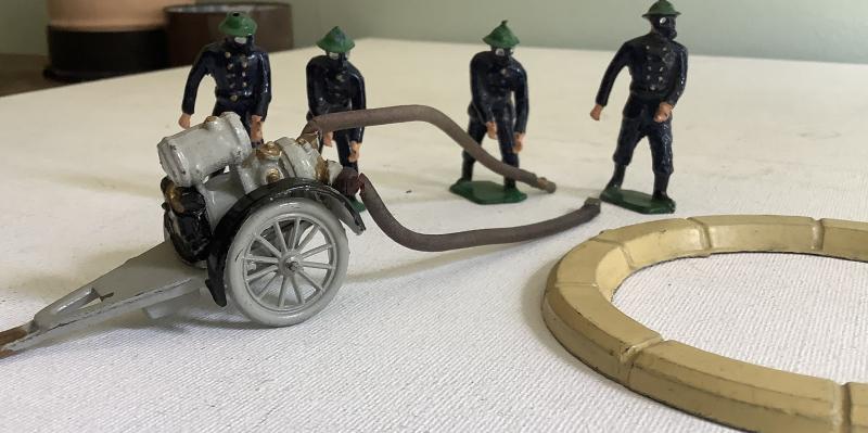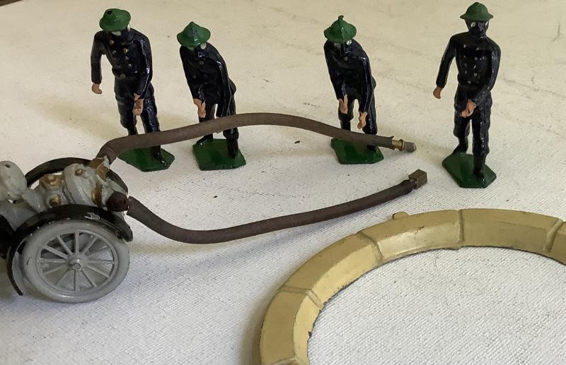 Pre War Taylor and Barrett Auxiliary Fire Service Lead Figures. Wheel pump and portable water tank these figures were produced between 1938-1940 Two years only due to bombing of the factory by the Luftwaffe Rare set. Still maintains original paint. Free P&P in UK