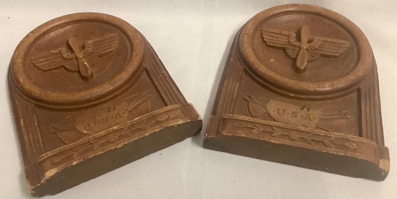Chalkware Pair of Bookends 'Rare' survivor as they are very fragile. Has Prop Wings Decoration to the front. Good overall condition, wear and tear due to storage.
