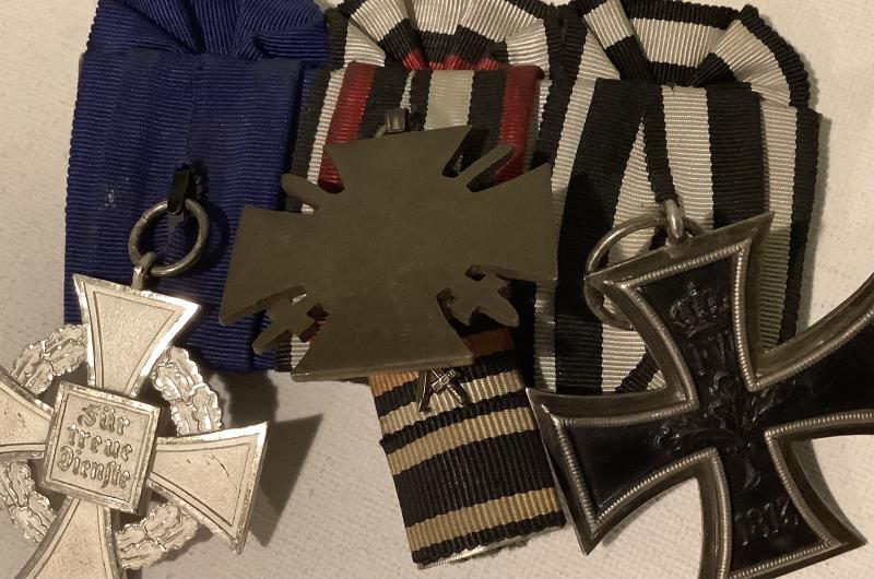 EKII Maker Marked KO WWI War Merit Cross with Swords & Third Reich Long Service Award.