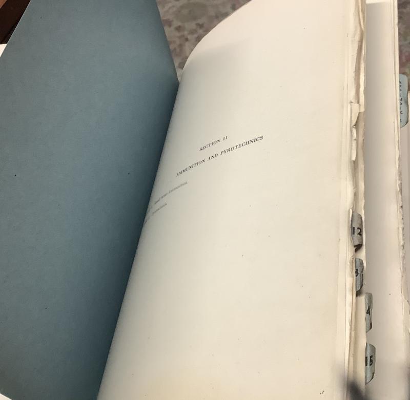 1943 Dated File Sections for Weapons. Guns, Grenades, Gun firing mechanisms, Gunsights and Cameras to name a few. Good condition all pages very clean, minor wear to front and back covers.
