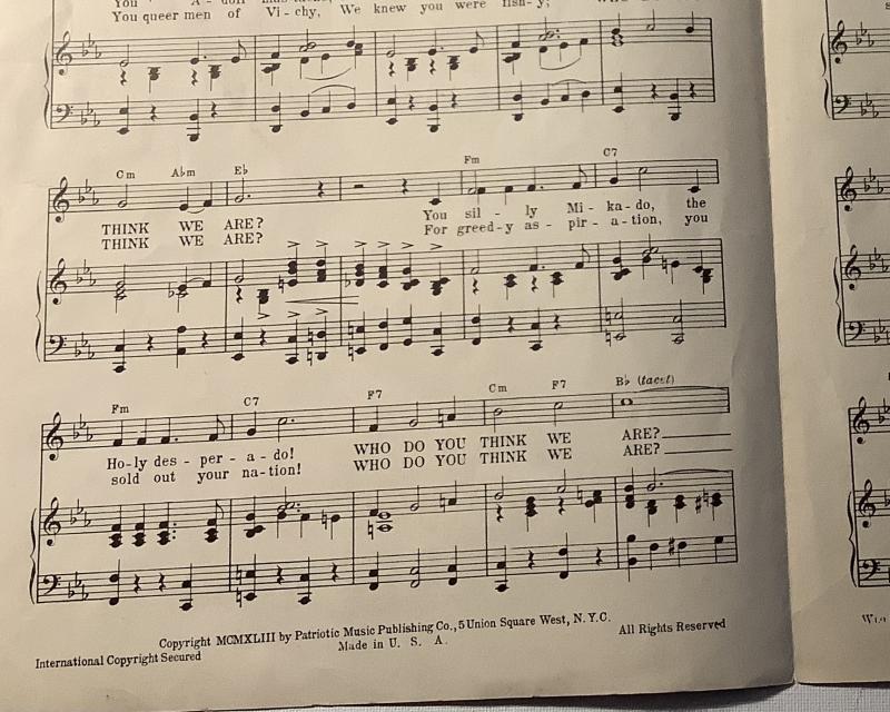 Great Example of Anti Axis’s Propaganda Sheet Music.Overall good used condition.